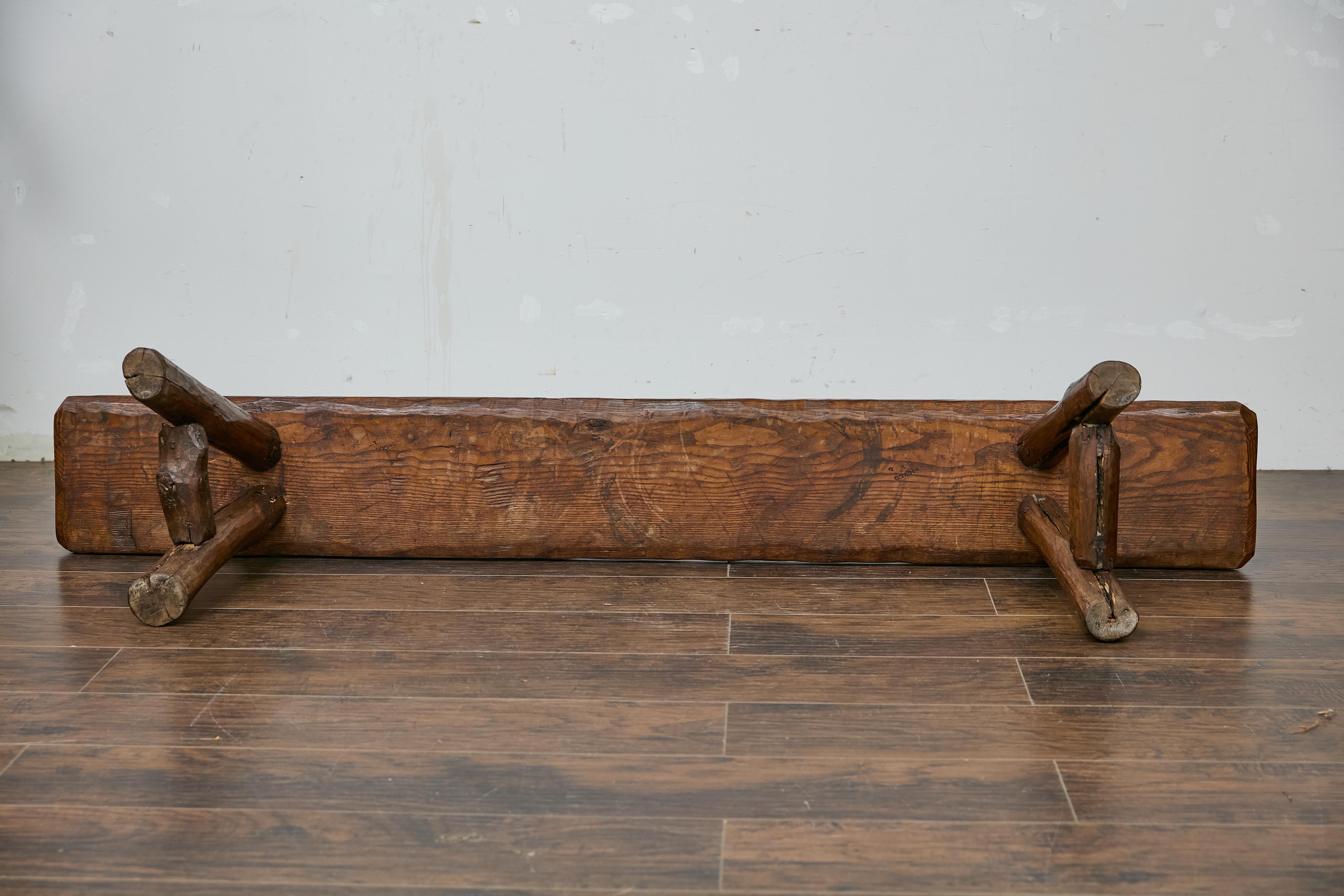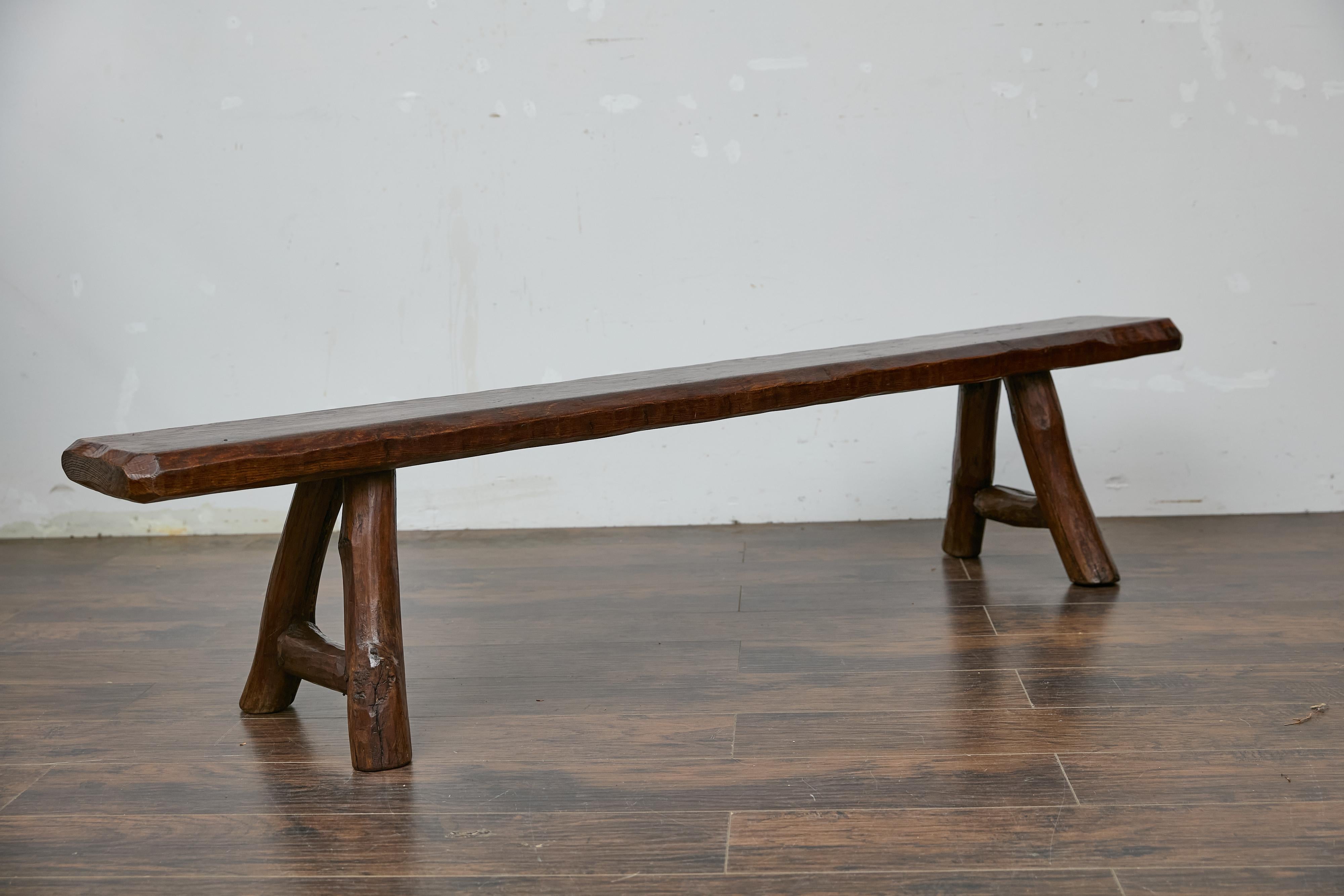 20th Century Chinese Elm Bench – Rustic Solid Wood with Minimalist Design