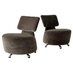 Mid Century Modern Restored Velvet Barrel Chair Pair by Lawrence Peabody