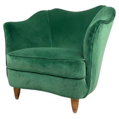 Pair of vintage Art Deco tank or speed armchairs, France circa 1930s. Streamline Moderne silouhette. Completely restored with new super plush green velvet. Excellent condition and su...