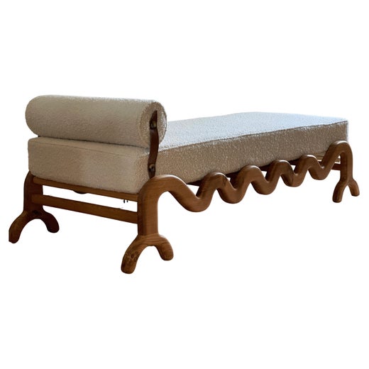 Custom Walnut & Bouclé Day Bench by Fosfeen Handcrafted, Made to Order(Extended)