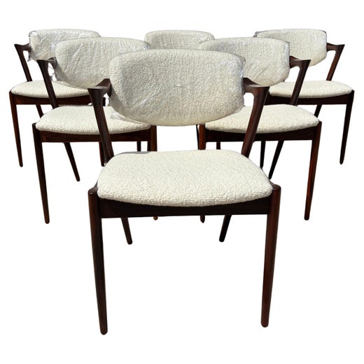 - Condition:Reupholstered. Repaired: All chairs have been checked and restored if needed to ensure that thet have no structural issues and are in veryu good condition with only small and minor signs of age and use. Refinished. Wear consistent with age and use. All Chairs have been refinished by our cabinetmaker and will be reupholstered with fabric of your choice from "Kvadrat".