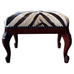 Zebra Ottoman / Coffee Table, Large Square, Two Zebra Hides, Custom Made In USA