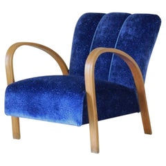 Pair of lounge chairs, reupholstered in mohair "Bold Forest" by Pierre Frey, stained beech, Italy, 1930s. A remarkable pair of Italian Art Deco lounge chairs from the 1930s, recentl...