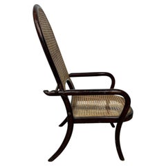 The frame is executed in beautifully bent beechwood, showcasing the mastery of traditional curved wood construction. The continuous armrests sweep seamlessly into the legs, creating a fluid, architectural silhouette that places the design in dialogue with Scandinavian and Viennese modernist traditions.