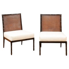 Edward Wormley, Armchairs, Wood, Mohair, Cane, USA, 1950s