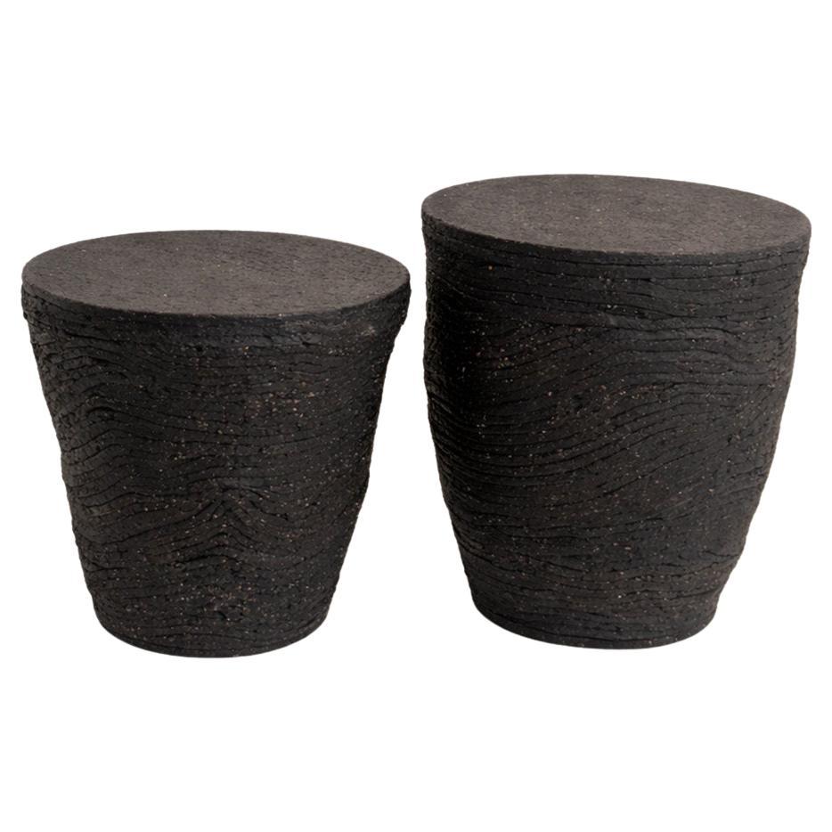Handmade stoneware coffee table manufactured at the workshop of Apparatu in Barcelona. Different clay bodys are mixed with natural fibers like corn, straw, or heather straw. The piec...