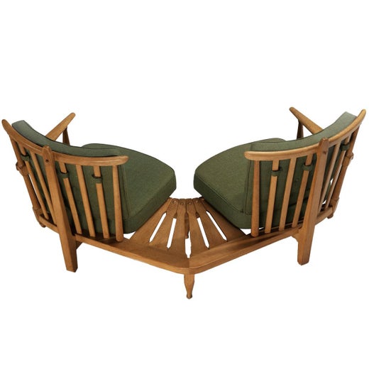 Guillerme and Chambron were as prolific as they were detailed, producing more than 2,000 pieces in the second half of the 20th century out of a former gun factory. Their furniture, which was mostly made with different tones of waxed oak, adhered to the trends of design that emerged after the war: mid-century modernism.