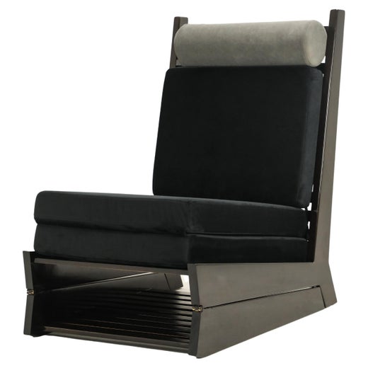 A Above armchair with black matte finish and light gray and beige fabrics. *Please check availability prior to purchase*.