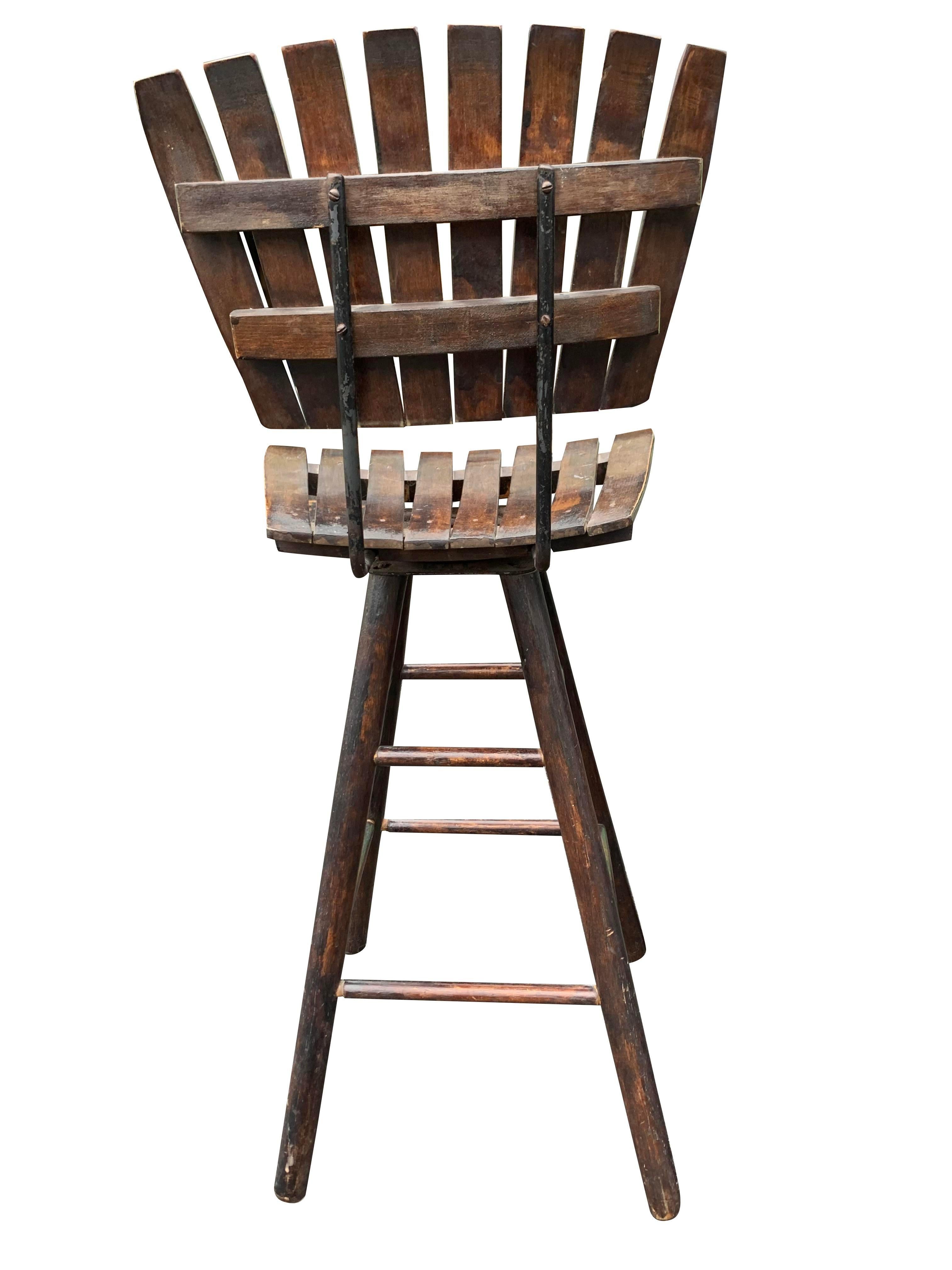 Set of 3 Arthur Umanoff Style Swiveling Slatted Bar Stools with Solid Iron Bases