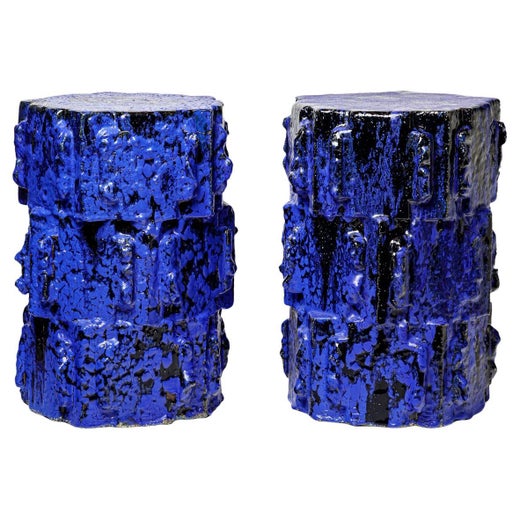 Items Similar to Pair of blue glazed stoneware tables or stools by Jean Ponsart, 2025.