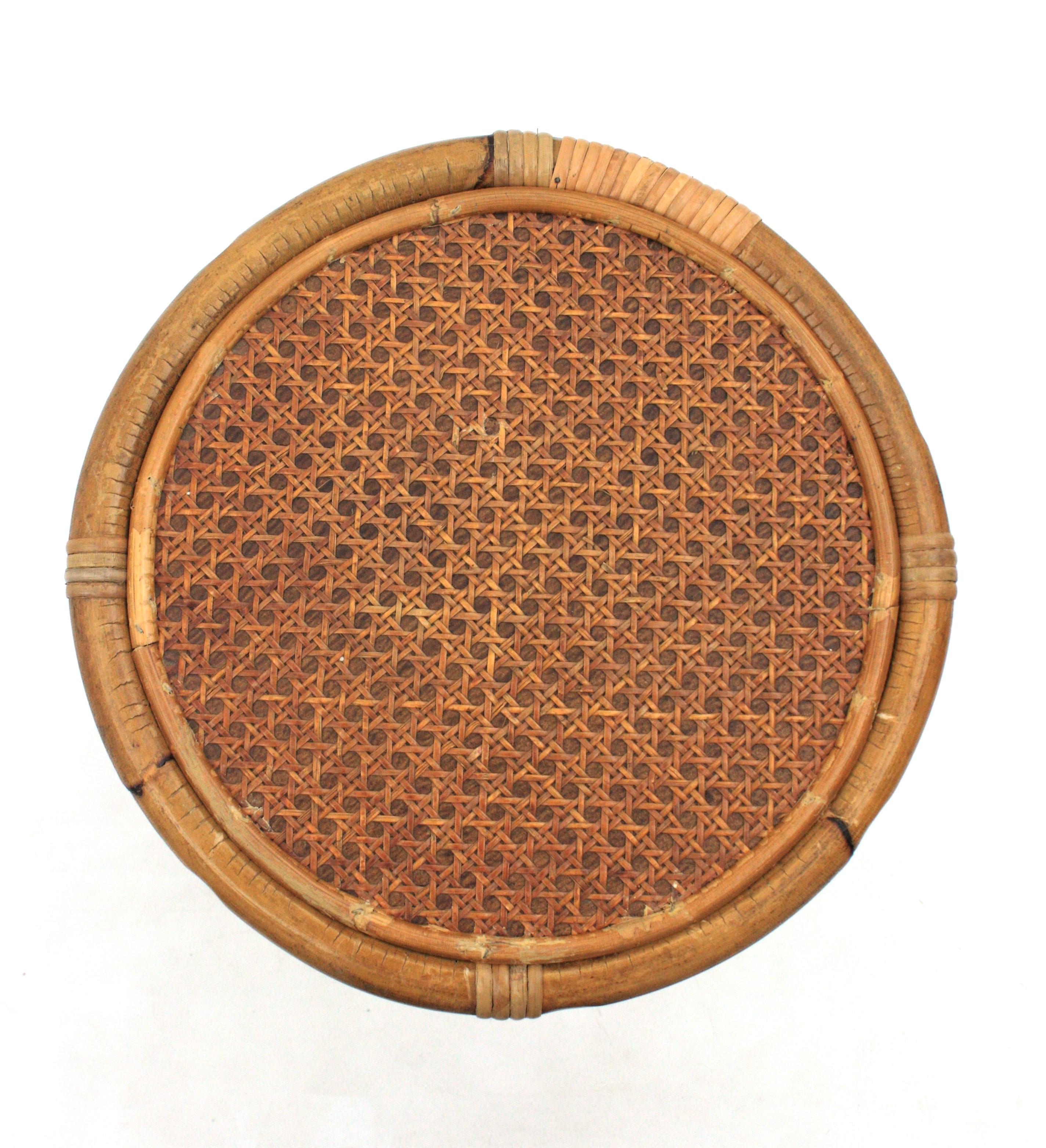 Italian midcentury rattan and bamboo stools / side tables, 1950s-1960s
