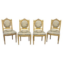 Excellent Set of Four Early 20th Century Louis XVI Style Giltwood Salon Chairs