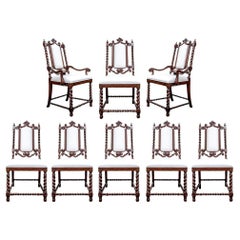 Antique Hand Carved Jacobean Oak and Cane Dining Chairs, Circa 1910s, a Set