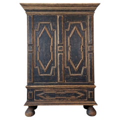 Swedish Rococo Tobacco Cabinet, Pine with Historic Paint, Circa 1720
