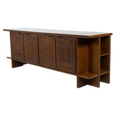 Sideboard demonstrates Amsterdam School design principles through bold geometric composition and contrasting wood species. Oak case construction features asymmetric arrangement: stor...