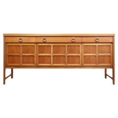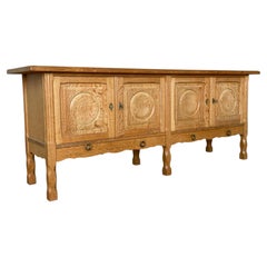 A seminal Danish Mid-Century sideboard in Nordic oak, it has been attributed to the iconic designer Henning Kjærnulf. This piece exemplifies his distinct "Danish Brutalist" vernacula...
