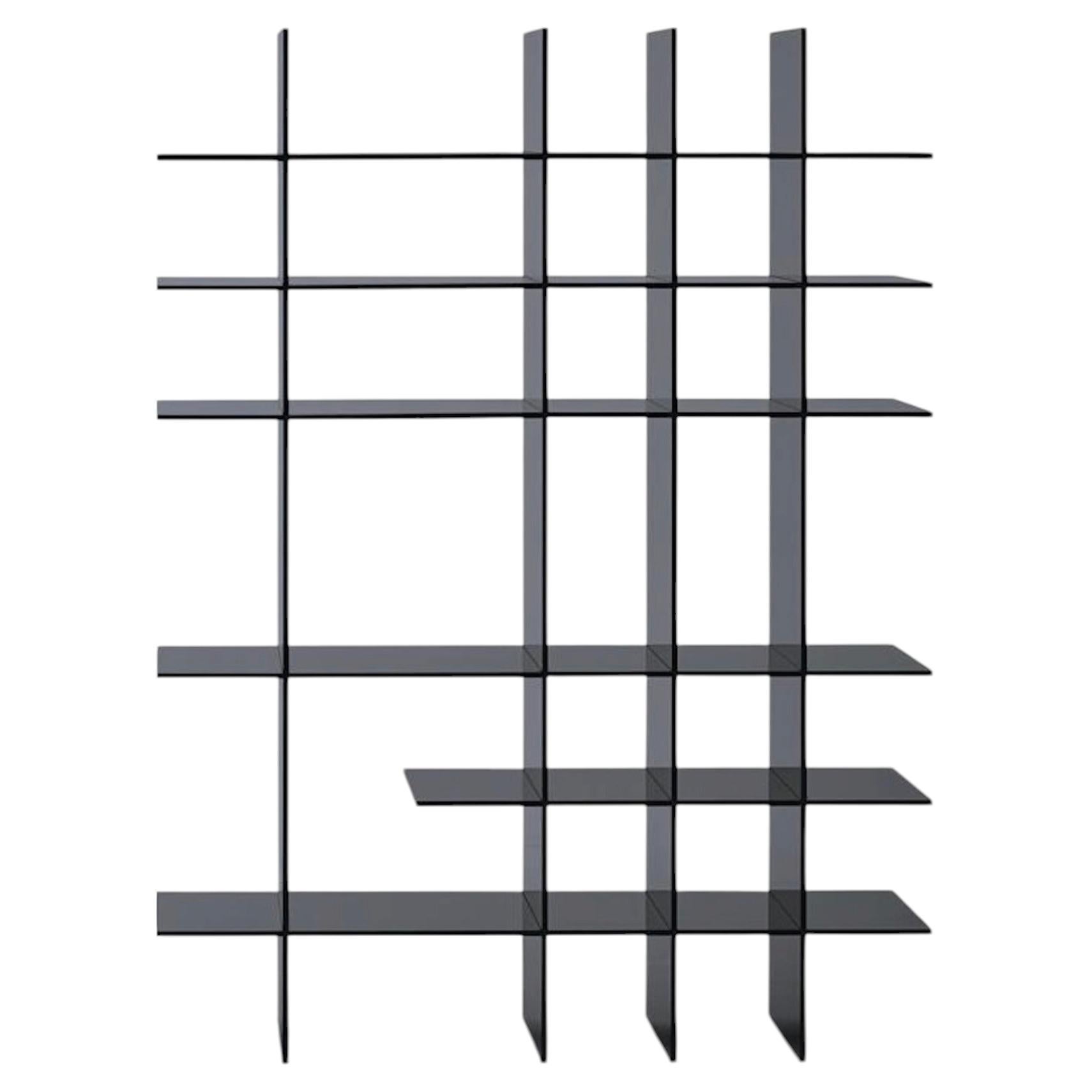 Italian Postmodern Architectural Wall Unit in Lacquered Black and Blue Wood