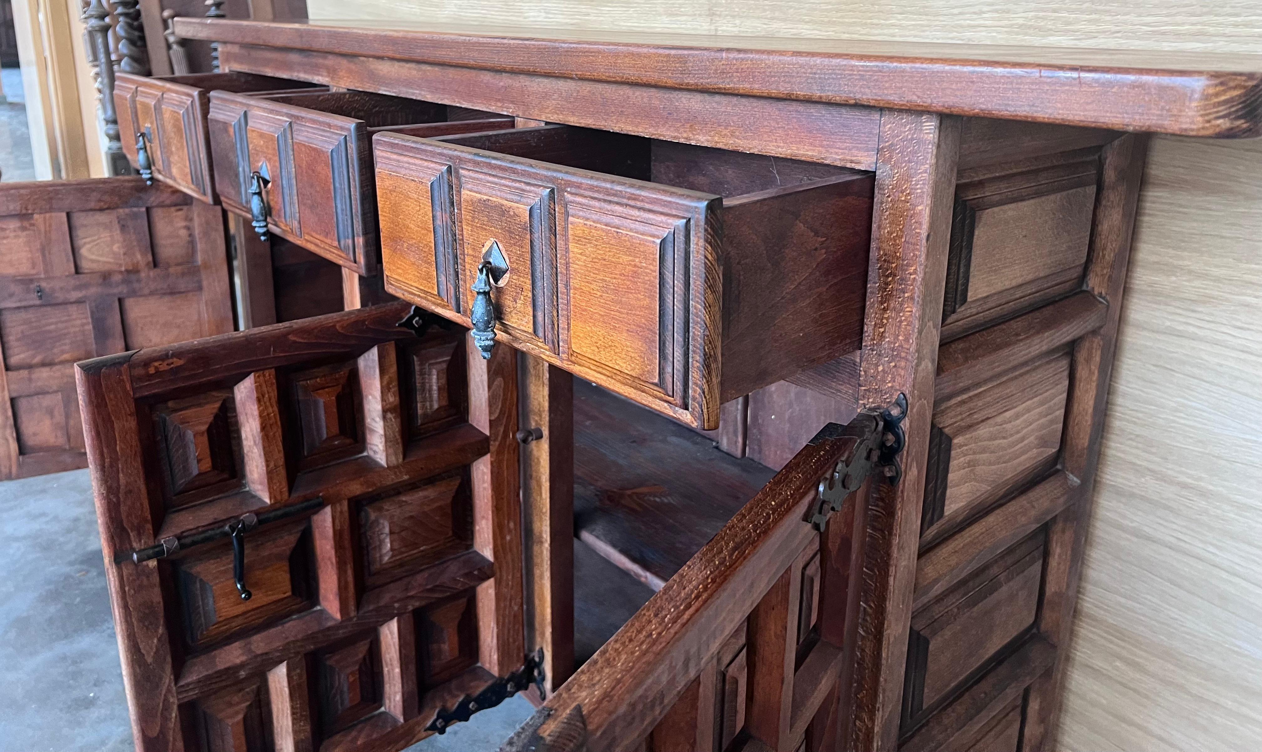 Items Similar to 19th Spanish Baroque Carved Walnut Tuscan Three Drawers Credenza or Buffet
