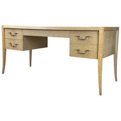 Water Desk with Eel Skin, Shagreen, Cerused White Oak and Patinated Bronze