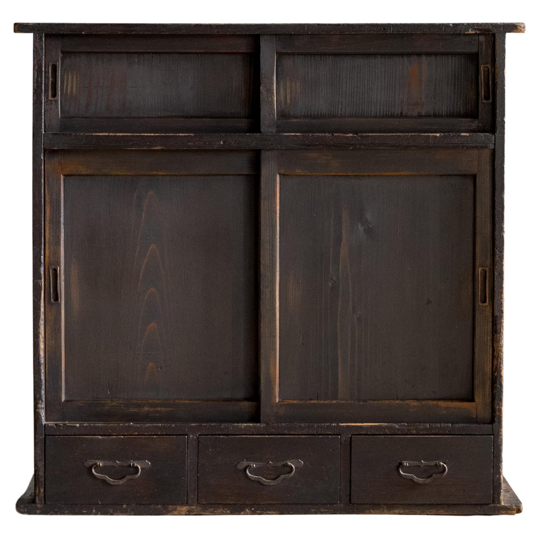 Japanese Antique Sliding-Door Cabinet (Cha Tansu), Taisho Era (1912–1926), Wabi