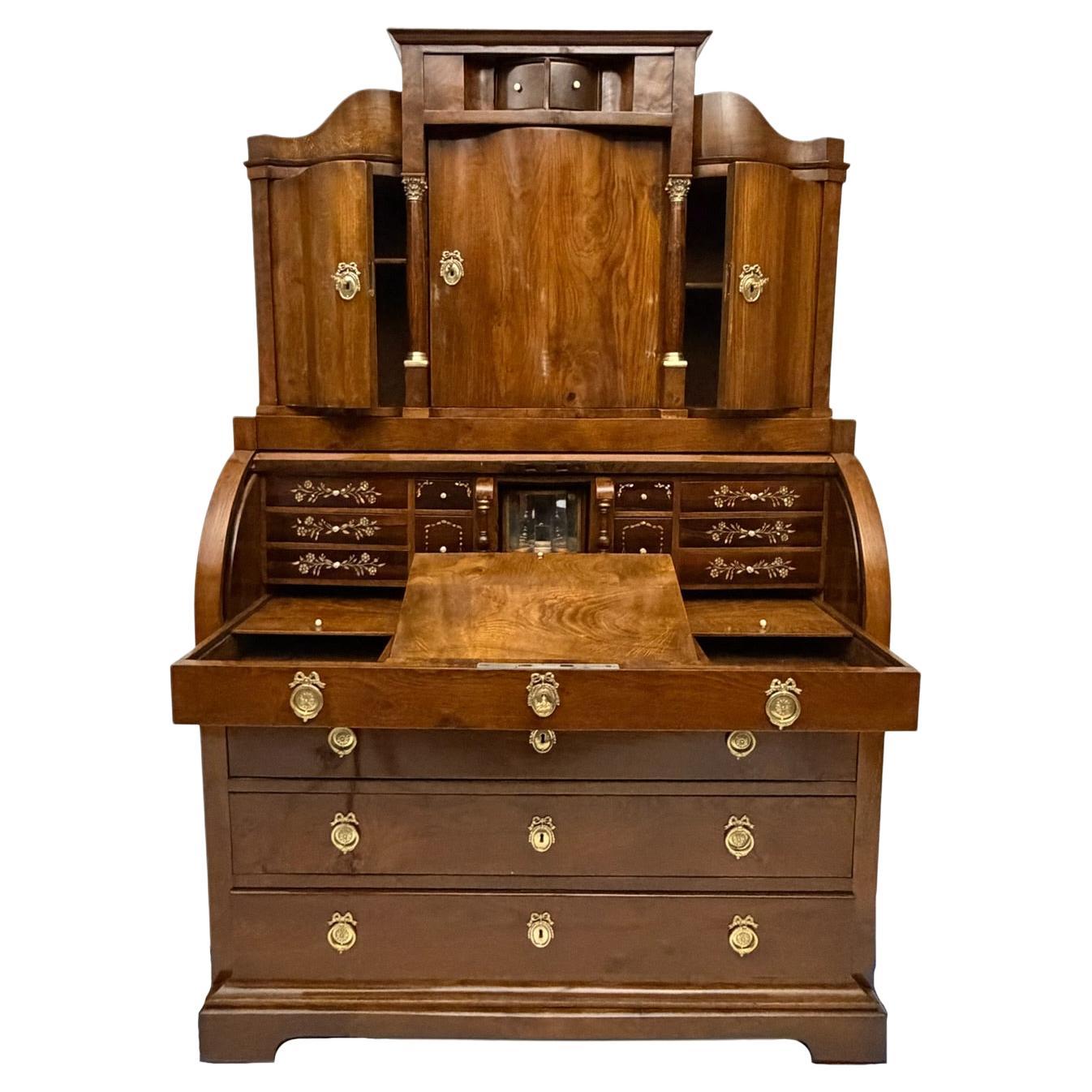 1820s German Biedermeier Antique Marquetry Case Pieces and Storage Cabinets