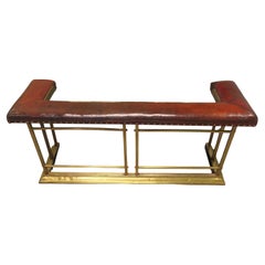 1960 Adam Style Leather Upholstered Brass and Steel Club Fender