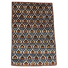 This is a beautiful antique handwoven silk Khotan rug from Xinjiang, Western China, measuring approximately 1'9" × 1'10". Woven with a silky, lustrous pile on a cotton foundation, th...