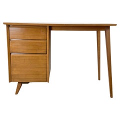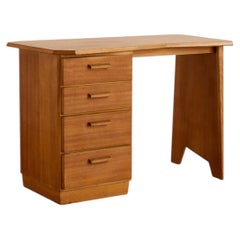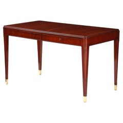 Dutch Art Deco Executive Desk, Curved Front, Brass Hardware, 1940s