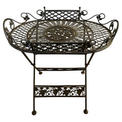 Wrought iron and glass table, Belgium mid-century modern. Extravagant artisan wrought iron side-table with 19" table top from glass. Composition in wrought iron, dated circa 1960s, ...