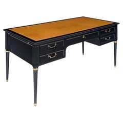 Louis XVI Style Writing Table or Desk of Walnut with Leather Top from France