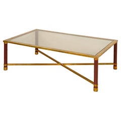 Jacques Duval Brasseur Brass and Glass Coffee Table France 1970s