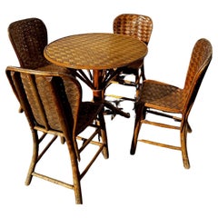 English 19th Century Octagonal Bamboo Table with Decoupage