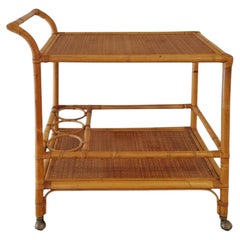 Italian Riviera Bamboo and Rattan Bar Cart Serving Trolley, 1950s