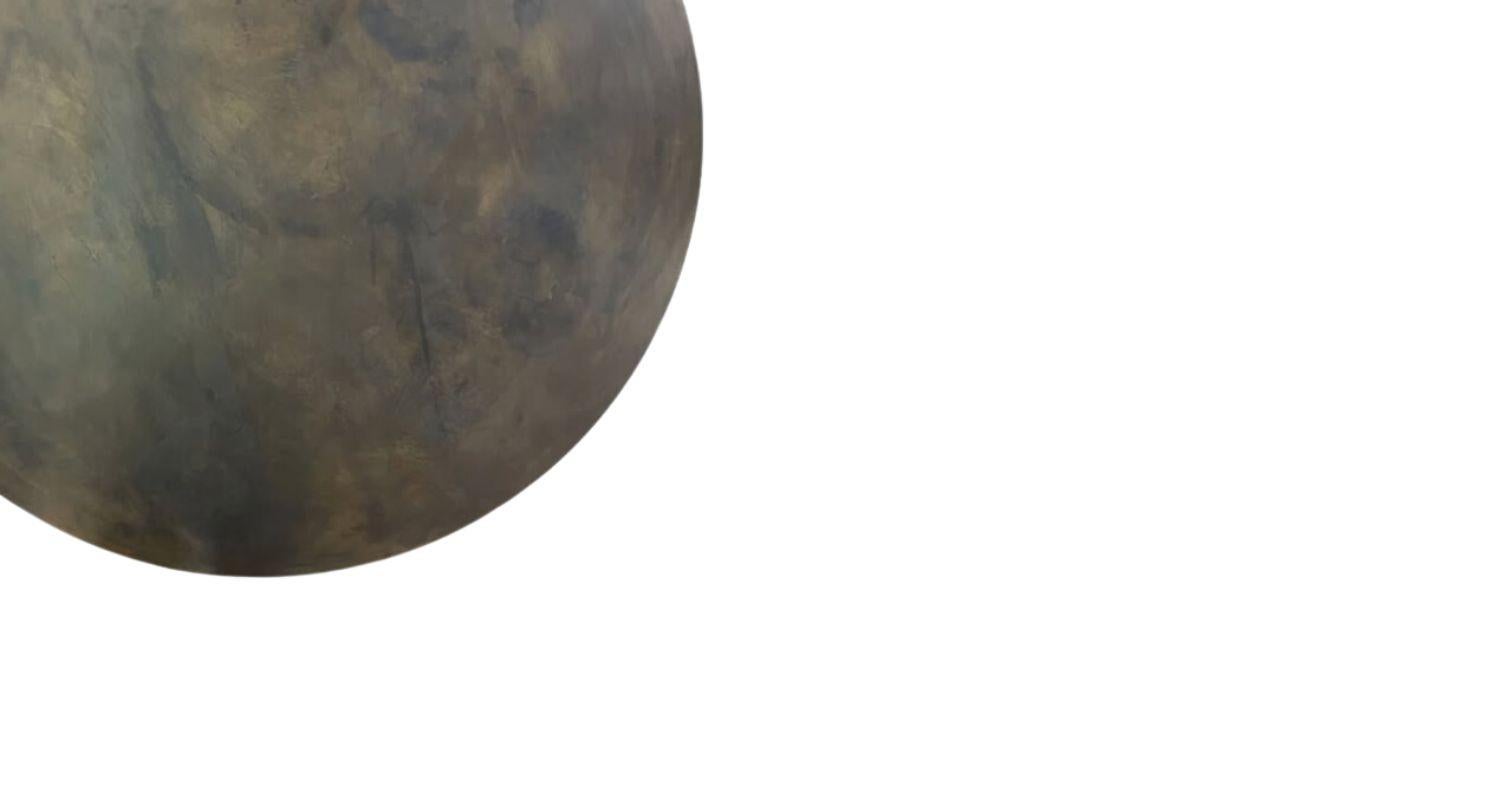 Carato is a unique coffee table with a large and thin metal disc serving as a support surface. It comes in three different sizes and can be used as a center table or a side table for a sofa, depending on the disc's height and size. The table features a light top resting on a solid wood structure, creating a strong contrast between the metal top with an oxidized finish (light in appearance) and the heavy-looking wooden base, resulting in a particular yet extremely elegant design.