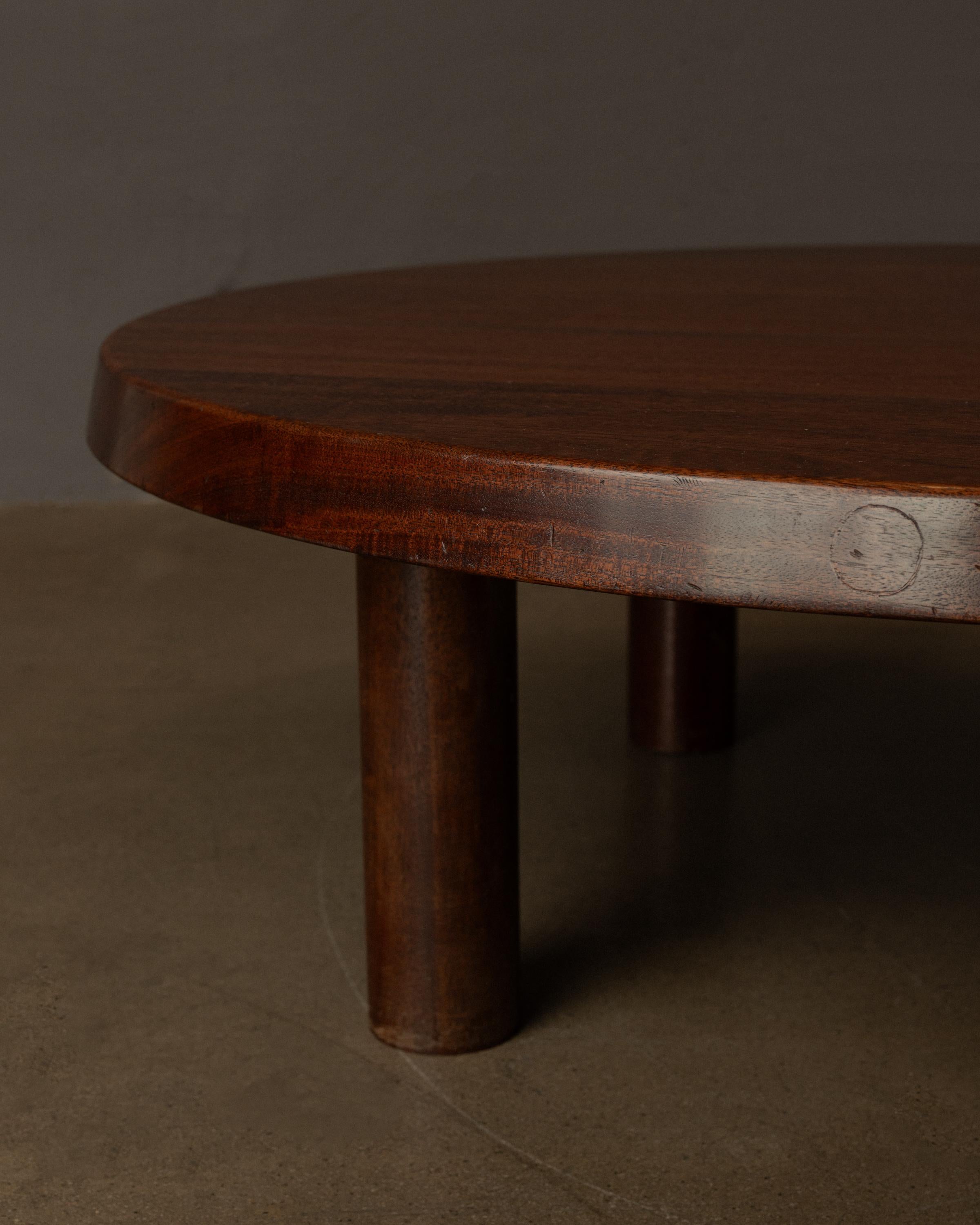 By the end of that decade, Perriand’s aesthetic had changed completely from the earliest days of her career. She produced a series of furniture in ebonized wood: chairs with gentle S-curve legs, front and back; tables with elliptical tops. In the 1960s, Perriand pushed the boundaries of prefab to produce high-quality housing and furnishings at low cost for the French ski resort Les Arcs. She also adopted an almost rustic look at the time, designing simple chairs with dowel-cut frames and rush seats.