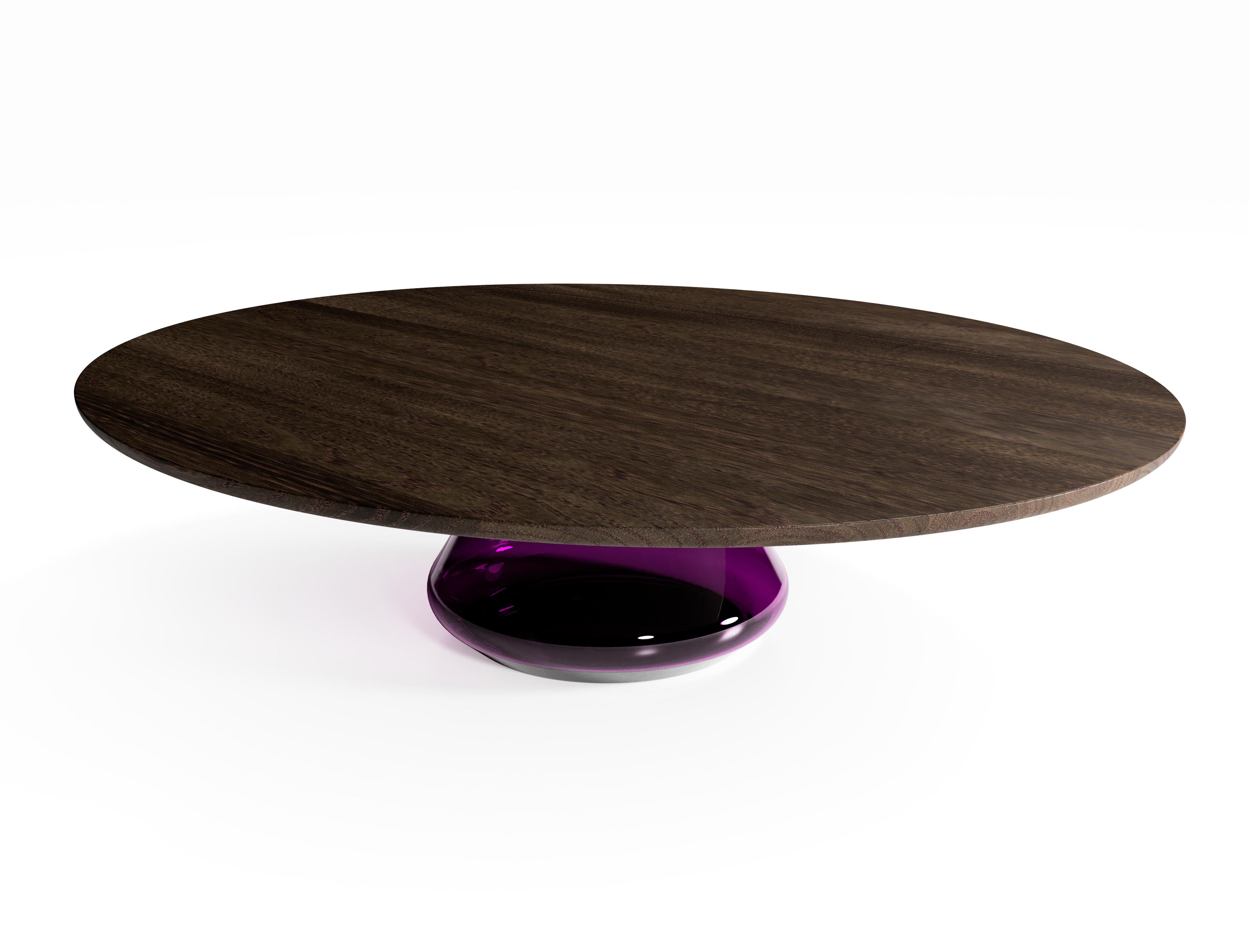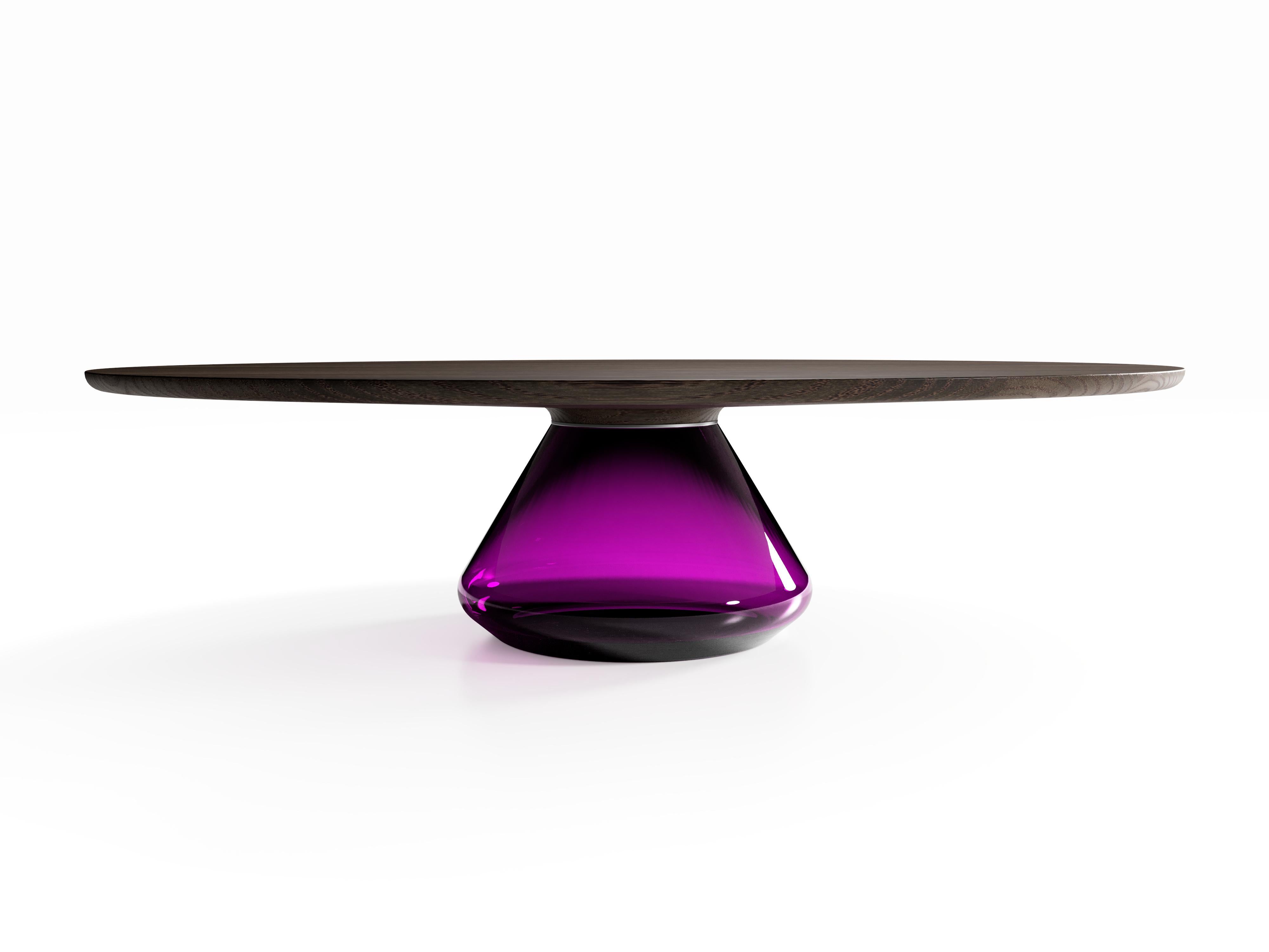 "Charoite Eclipse" Coffee Table ft. Hand-Blown Glass and Dark Oak Top