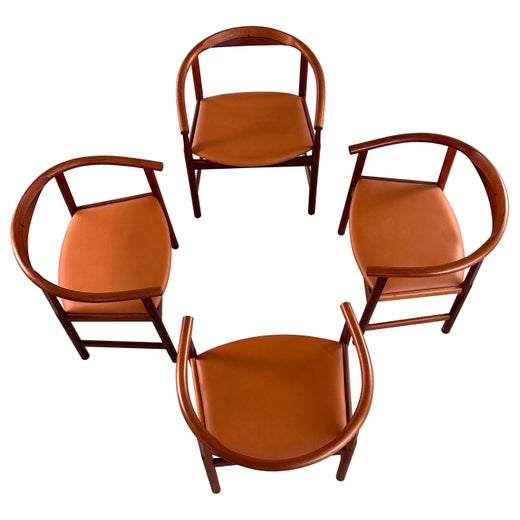 In keeping with that tenet, several of Hans Wegner’s best chair designs have their roots in traditional seating forms. The Peacock chair (designed in 1947) is a throne-like adaptation of the Windsor chair; pieces from the China chair series (begun in 1944) as well as the 1949 Wishbone chair, with its distinctive Y-shaped back splat, are derived from 17th-century Ming seating pieces, as is the upholstered Ox chair (1960). Wegner’s comfy Papa Bear chair (1951) is an almost surreally re-scaled English wingback chair.
