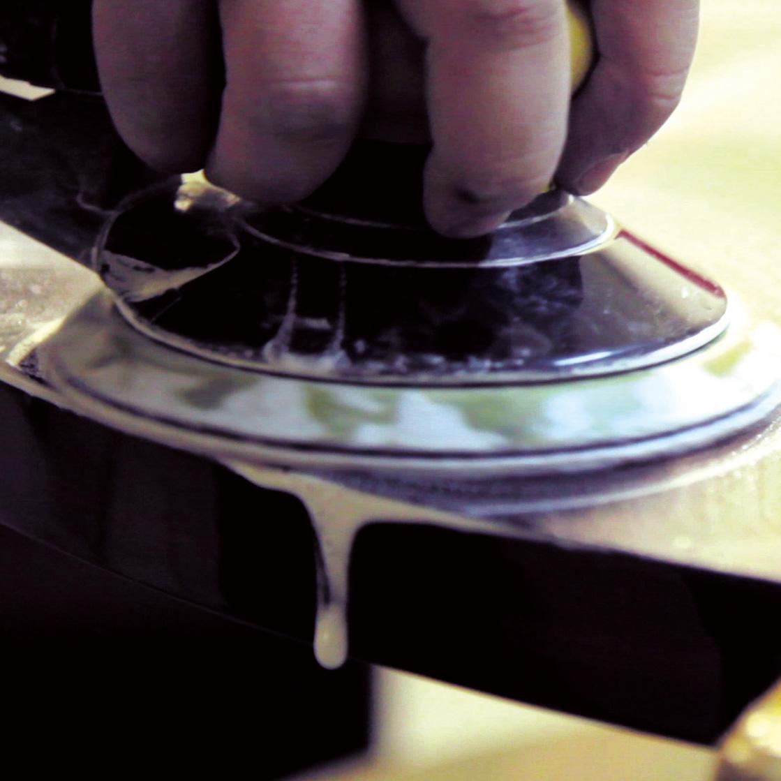 Our objects are inspired by the most unusual things. The Gift Wrap table is a steel ribbon wrapped around a volume, like a box of chocolates.