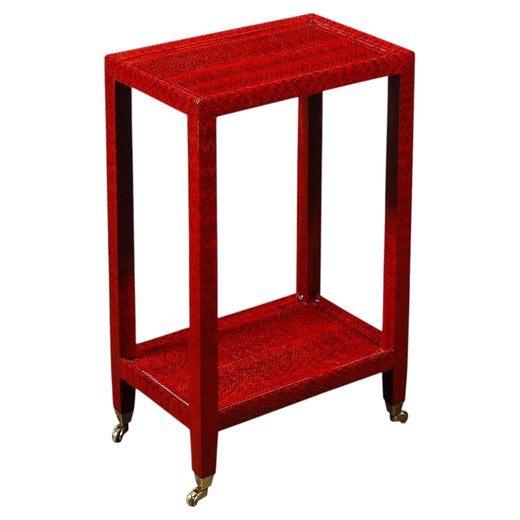 Springer employed Lucite, brass, and gunmetal along with chromed and polished steel, and revived exquisite finishes rarely seen since the days of Art Deco masters such as Émile-Jacques Ruhlmann and Jean-Michel Frank: shagreen (a type of sharkskin), python, goatskin, bone, horn, and lacquered parchment, as well as fabrics that include batik prints. Made of such materials, Springer’s work is by its very nature flamboyant and eye-catching: a suite of pieces will astonish, and an artfully placed side table in exotic hide will add a surprising spark.