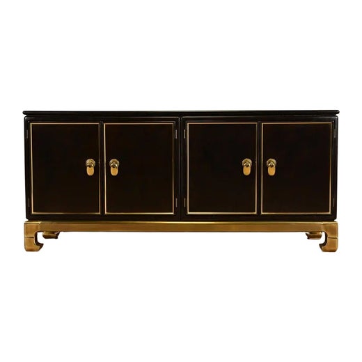Compared to that other furniture-makers in historically minded Grand Rapids, Michigan, the work of Mastercraft seems positively flamboyant. The company was founded in 1947 by brothers Charles and William Doezema, who hailed from a long line of cabinetmakers. They went overseas during their service in World War II, and returned home with a plan to make furniture with cosmopolitan flair. Their firm specialized in chairs and case pieces that have modernized traditional forms, finished in exotic wood veneers such as amboyna, yew, burl and fruitwood, and trimmed in brass. Bureaus and credenzas often feature cabinet fronts with decorative brass details such as silhouettes of flowers and birds, or figures that resemble Chinese characters.