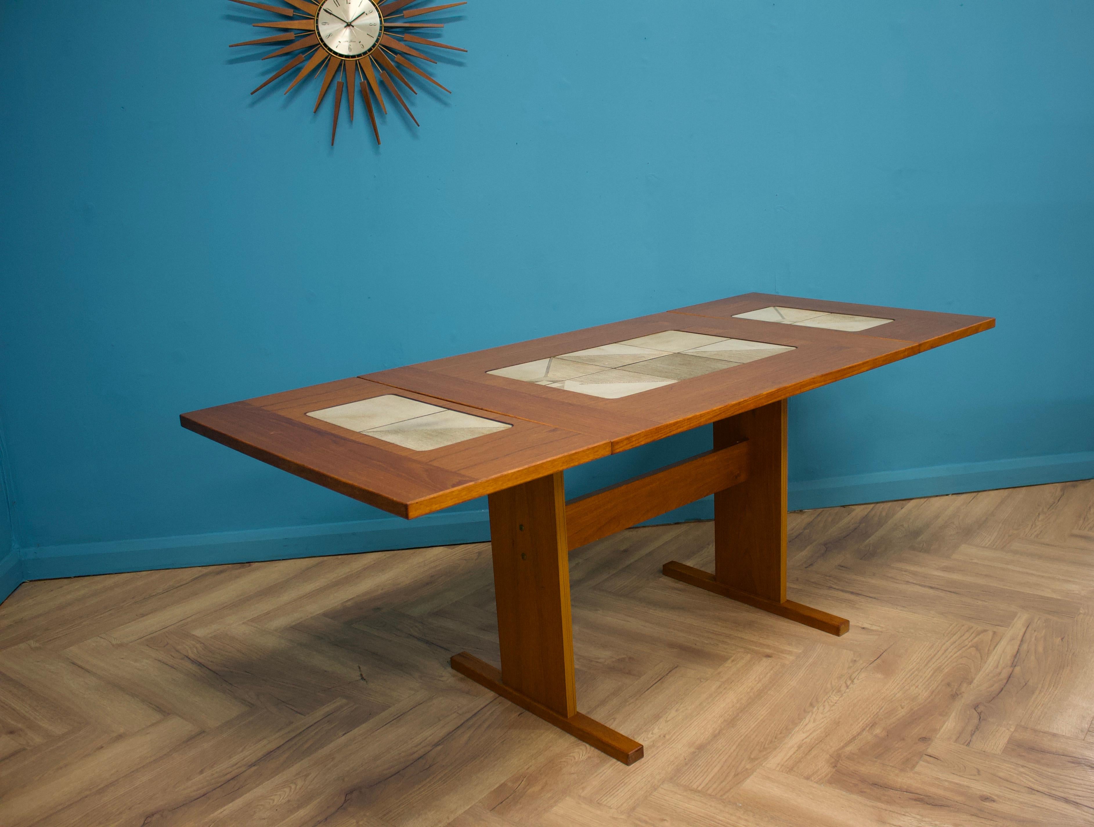 Mid Century Modern Danish Expandable Dining Table W/ Tile Inlay by Gangso Mobler