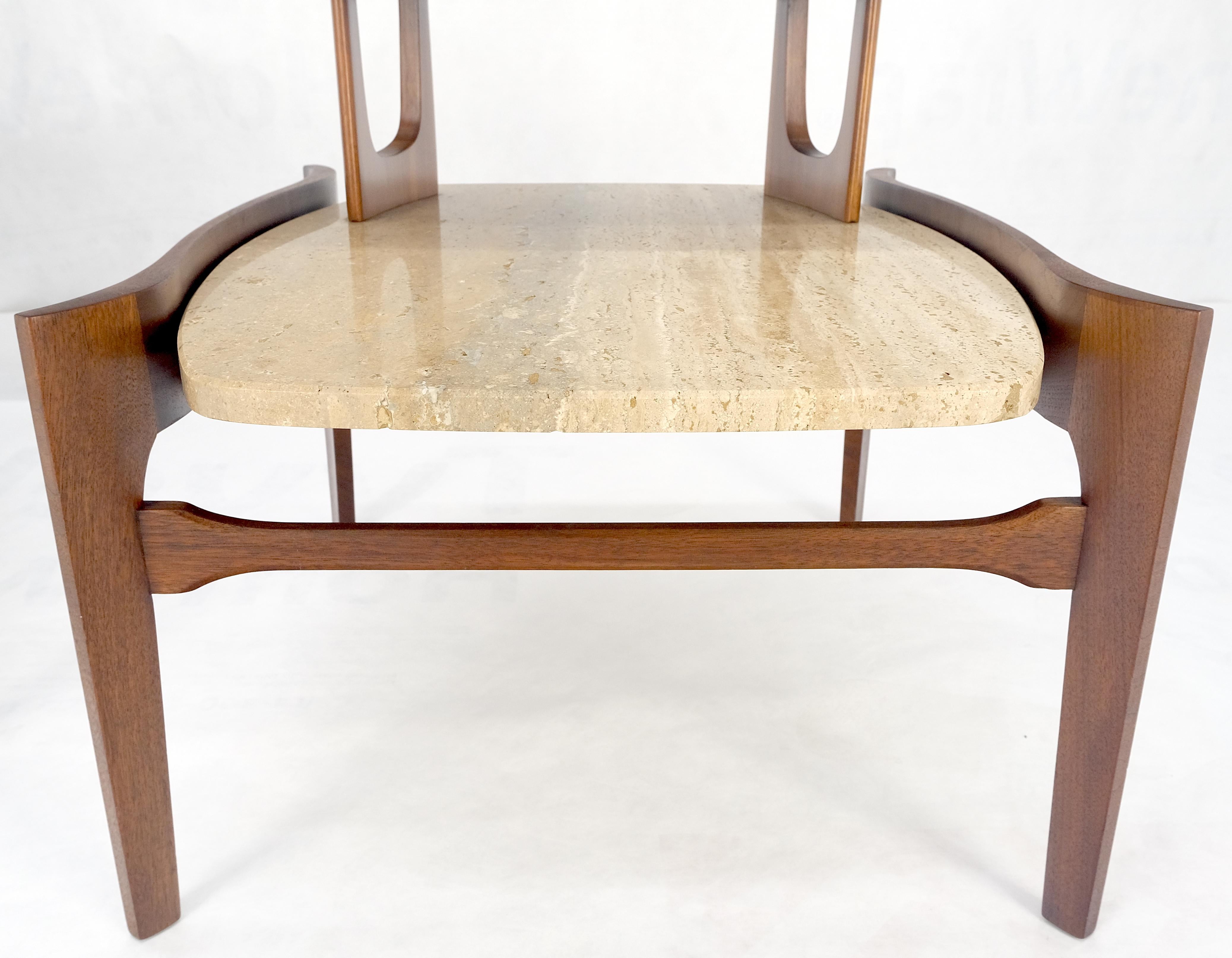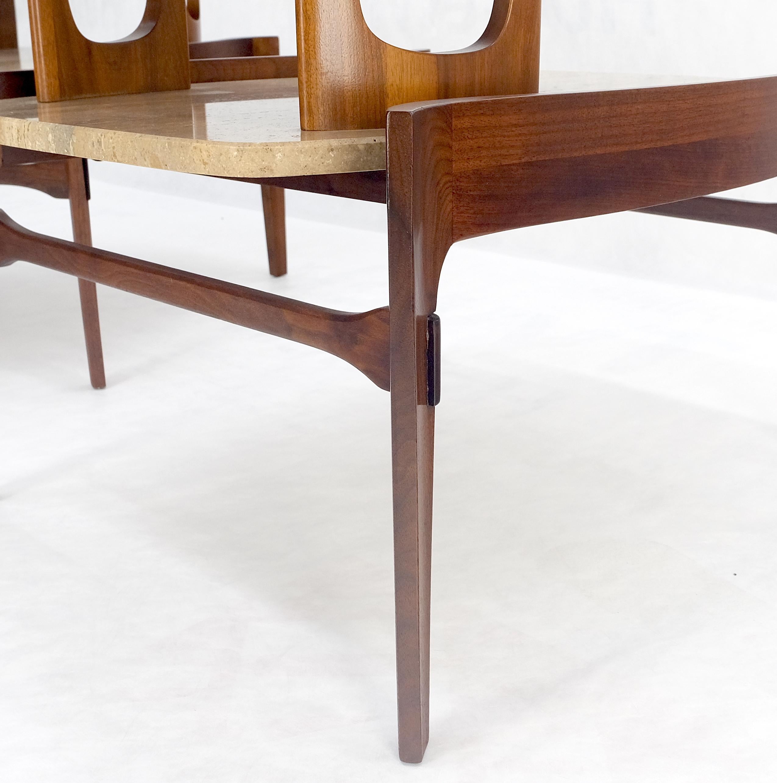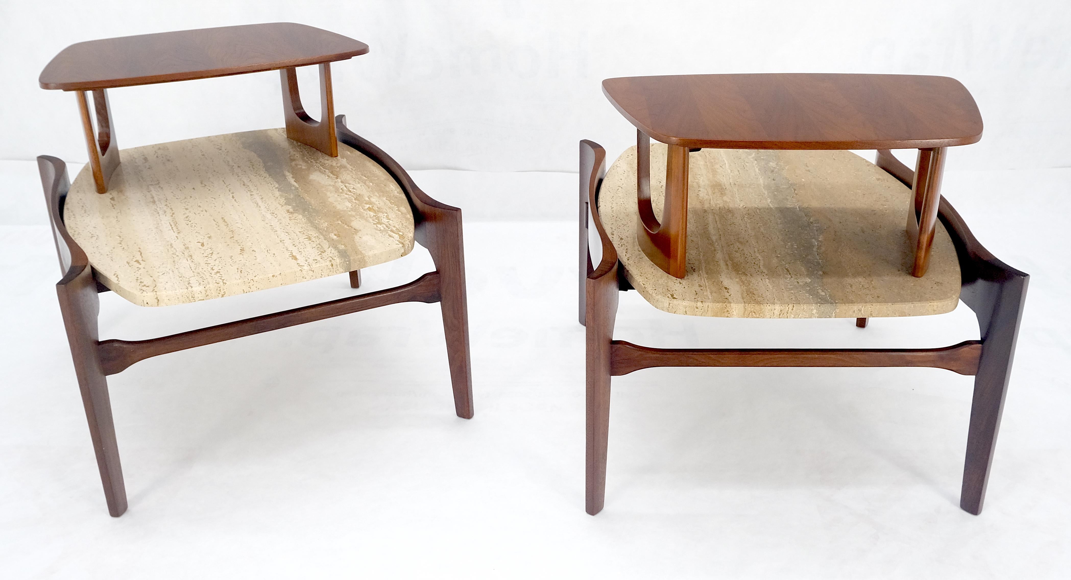 Pair of Bertha Schaefer Walnut Travertine Top Step Side End Tables Stands MINT!