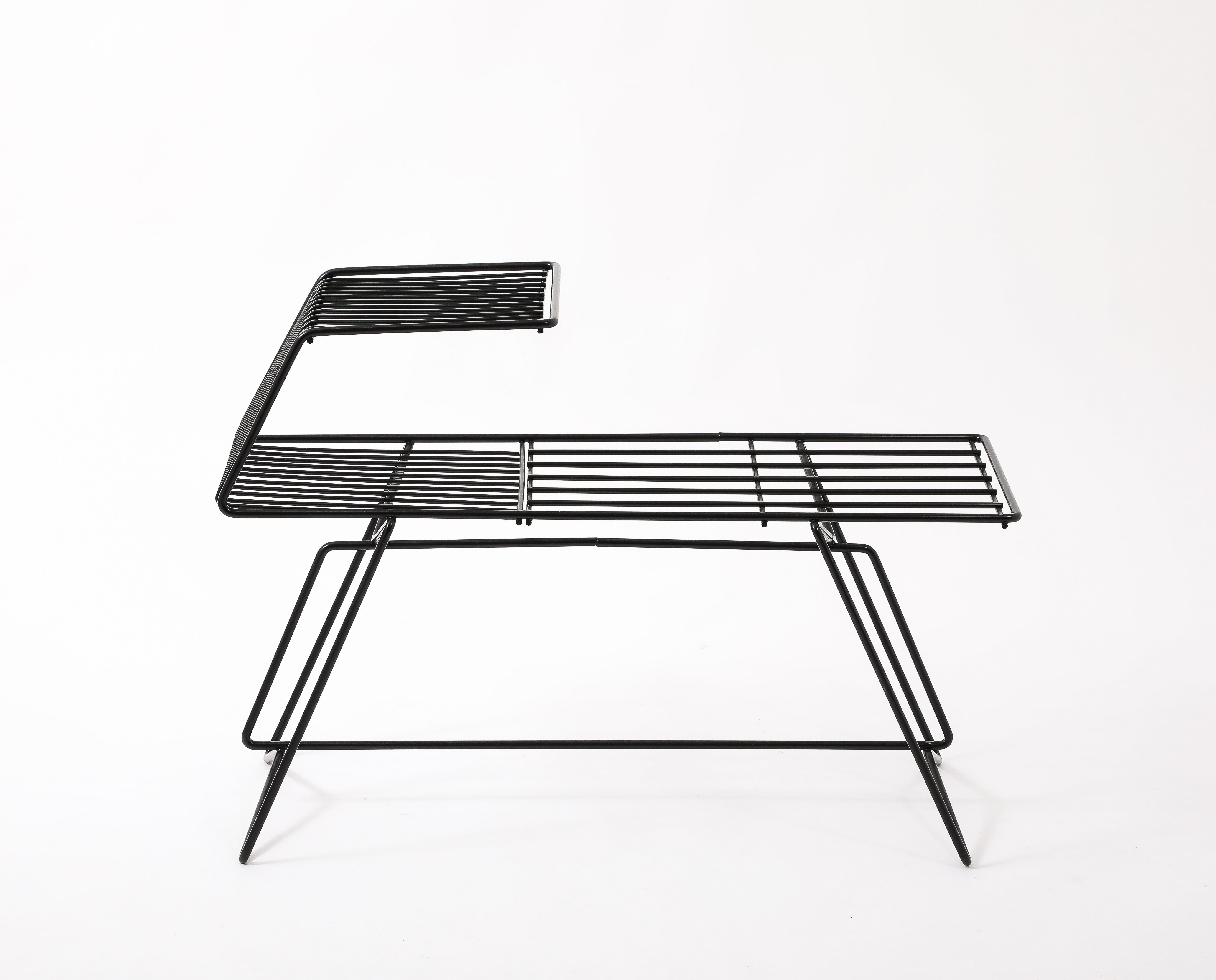 Abstract Design Glass Top Wire Shelf Mid-Century Modern Side Table Cart Tray
