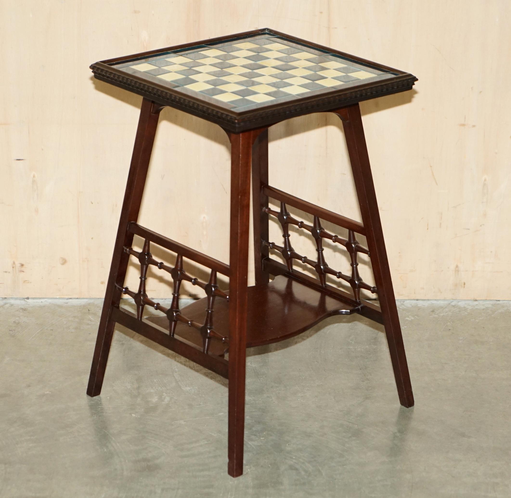 ANTIQUE VICTORIAN AESTHETIC MOVEMENT STYLE TiLED TOP CHESSBOARD CHESS TABLE