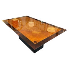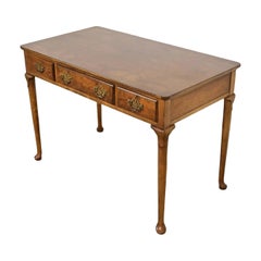 1970s Modern Burl Walnut and Brass Parson’s Style Console Table / Slim Desk