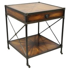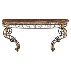 French table combines Brutalist metalwork with artisan tile craftsmanship from the Mid-Century period. The frame employs traditional barley-twist ironwork, where each leg is hand-for...