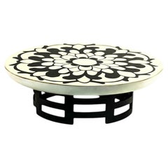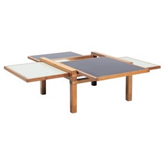 Scarce design, bold and dramatic, sculptural-form, exceptionally executed in bird’s-eye maple lacquered and laminated wood, including blue accents and columns that offer a visually striking contrast. Retaining the original manufacturer's label, signed, 195/88.