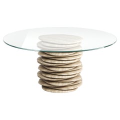 ‘Aurea’ Side Table by HAAND, crafted from premium silver travertine. This exquisite piece measures 13.8 inches in diameter and 18.5 inches in height, with a substantial weight of 80 lbs.