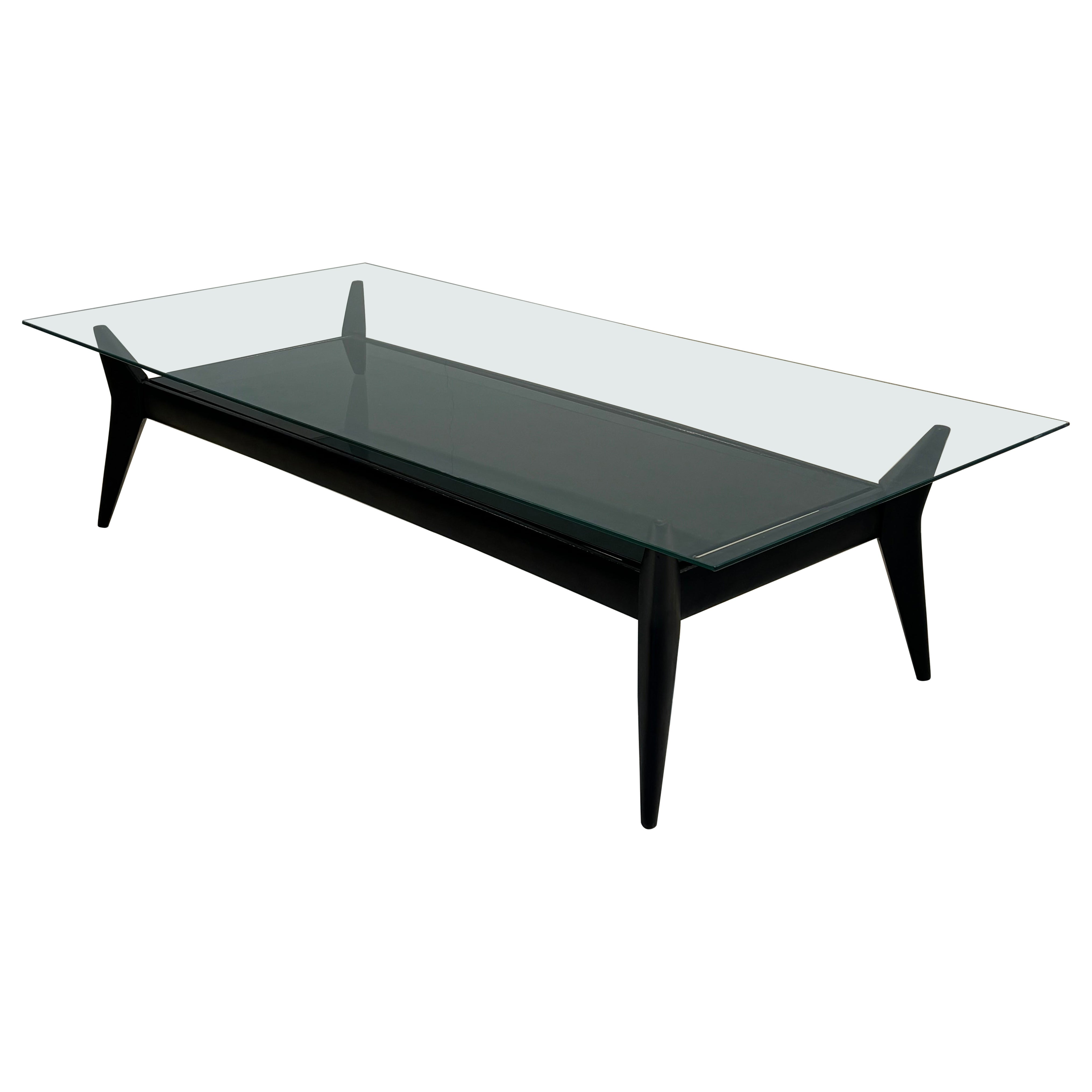 Osvaldo Borsani Coffee Table Black Opal Glass Wood 1930 Italy