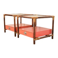 Pair of French Riviera Nightstands or Side Tables in Bamboo, Rattan, Italy, 1970